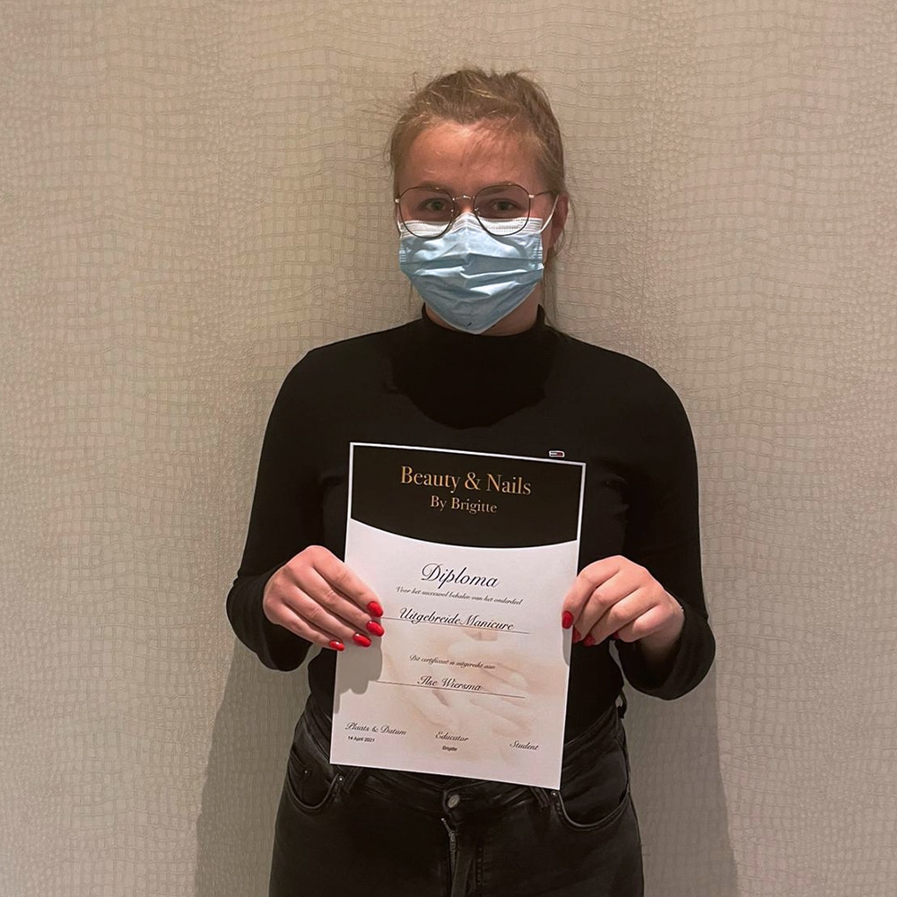 Om er zeker van te zijn dat ik goede kwaliteit kan leveren heb ik verschillende opleidingen/cursussen gedaan op het gebied van nagels. Zo ben ik gediplomeerd als uitgebreide manicure. Ook heb ik de opleiding tot nagelstyliste gedaan. Ik heb lange praktijkdagen gehad, waarbij ik gedreven werd tot perfectie, die perfectie pas ik ook toe in mijn salon. Ook heb ik de anatomie en pathologie van de nagels geleerd, dit houdt in dat ik probleemnagels en ziektes in de nagels kan herkennen en ik weet hoe ik daarop moet handelen. Zodat ik ergere problemen van de nagels kan proberen te voorkomen.
